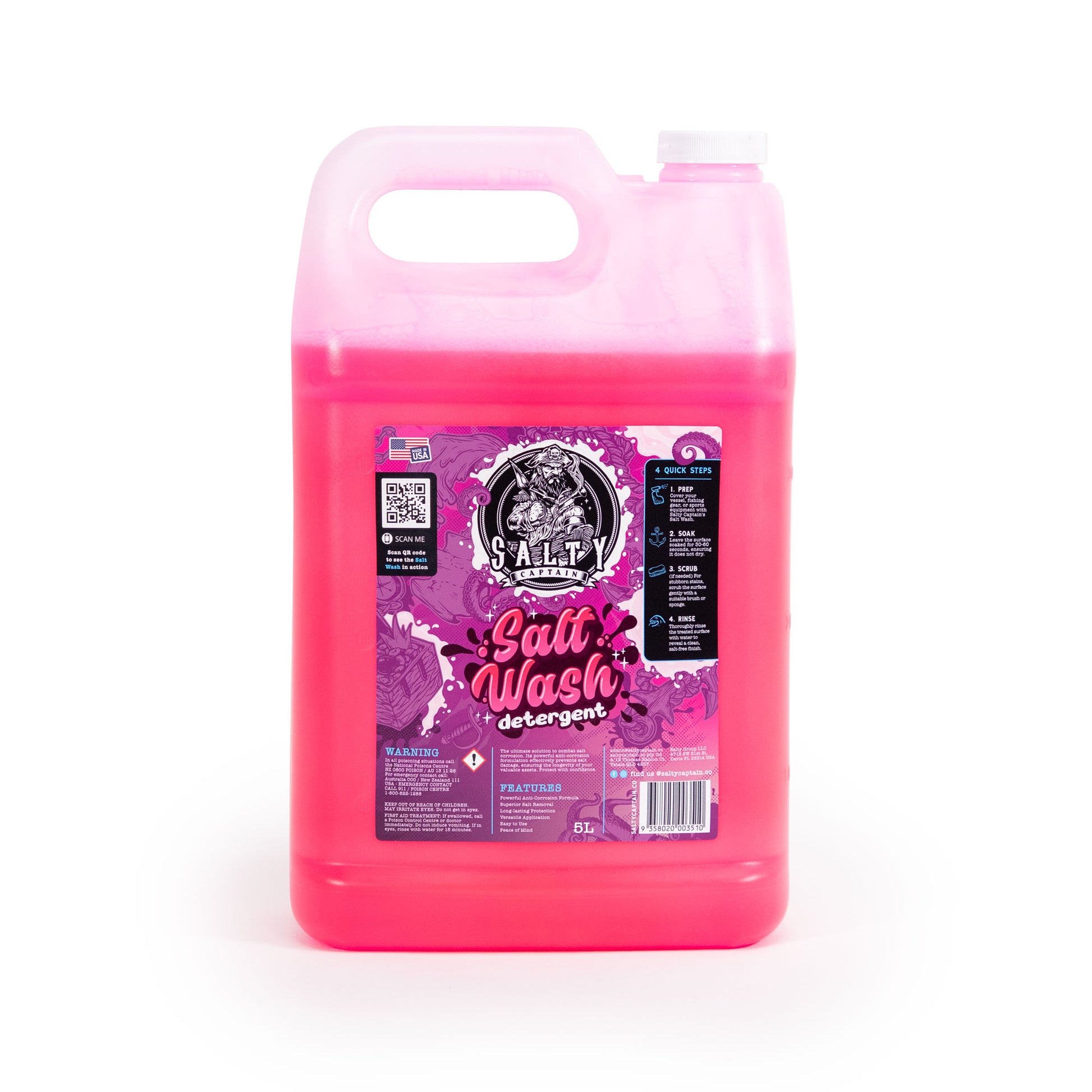 The Salt Wash Detergent is expertly designed to remove stubborn salt, grime, and sea spray from boats, PWCs, and even homes. Loaded with powerful anti-rust and corrosion inhibitors, this detergent ensures your surfaces stay clean and protected, making it essential for anyone living or working in coastal areas.