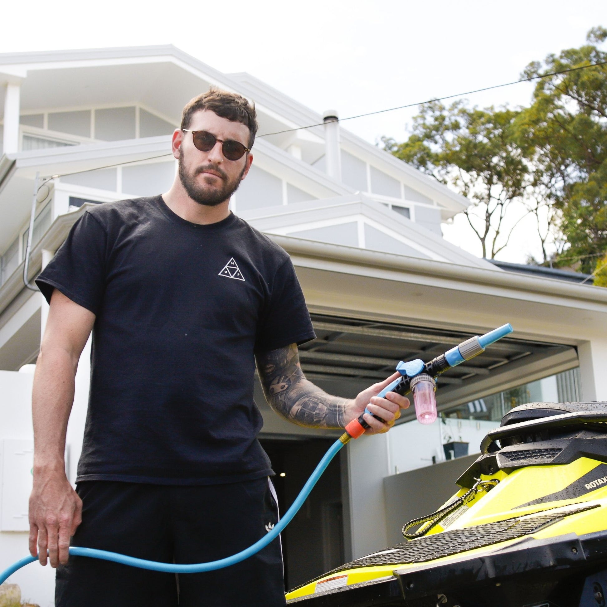 - Attach the Captain’s Musket to your garden hose.