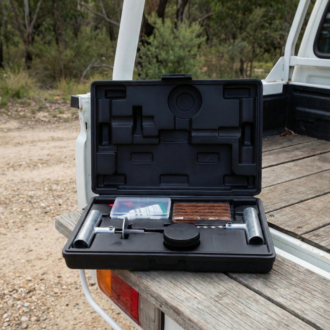 A comprehensive puncture repair kit designed for common off-road tyre punctures.