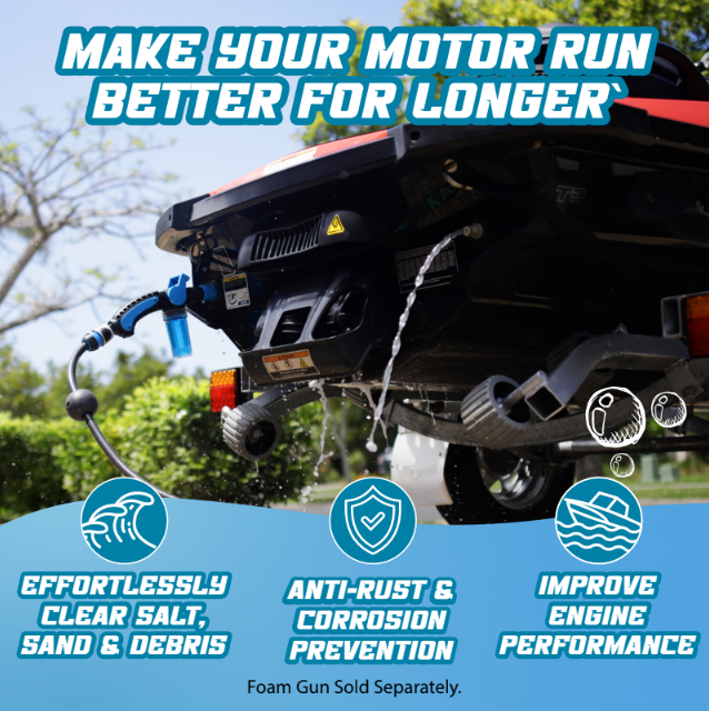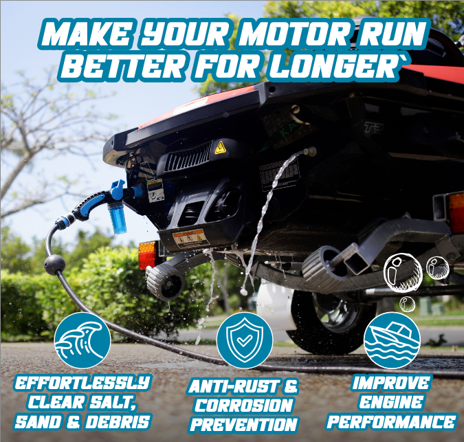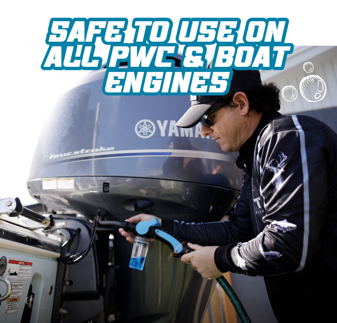 A: We recommend running the flush for 2–3 minutes through your outboard or PWC cooling system. This allows enough time to dissolve salt build-up and circulate corrosion inhibitors throughout the internal pathways. Always follow with a clean water rinse.