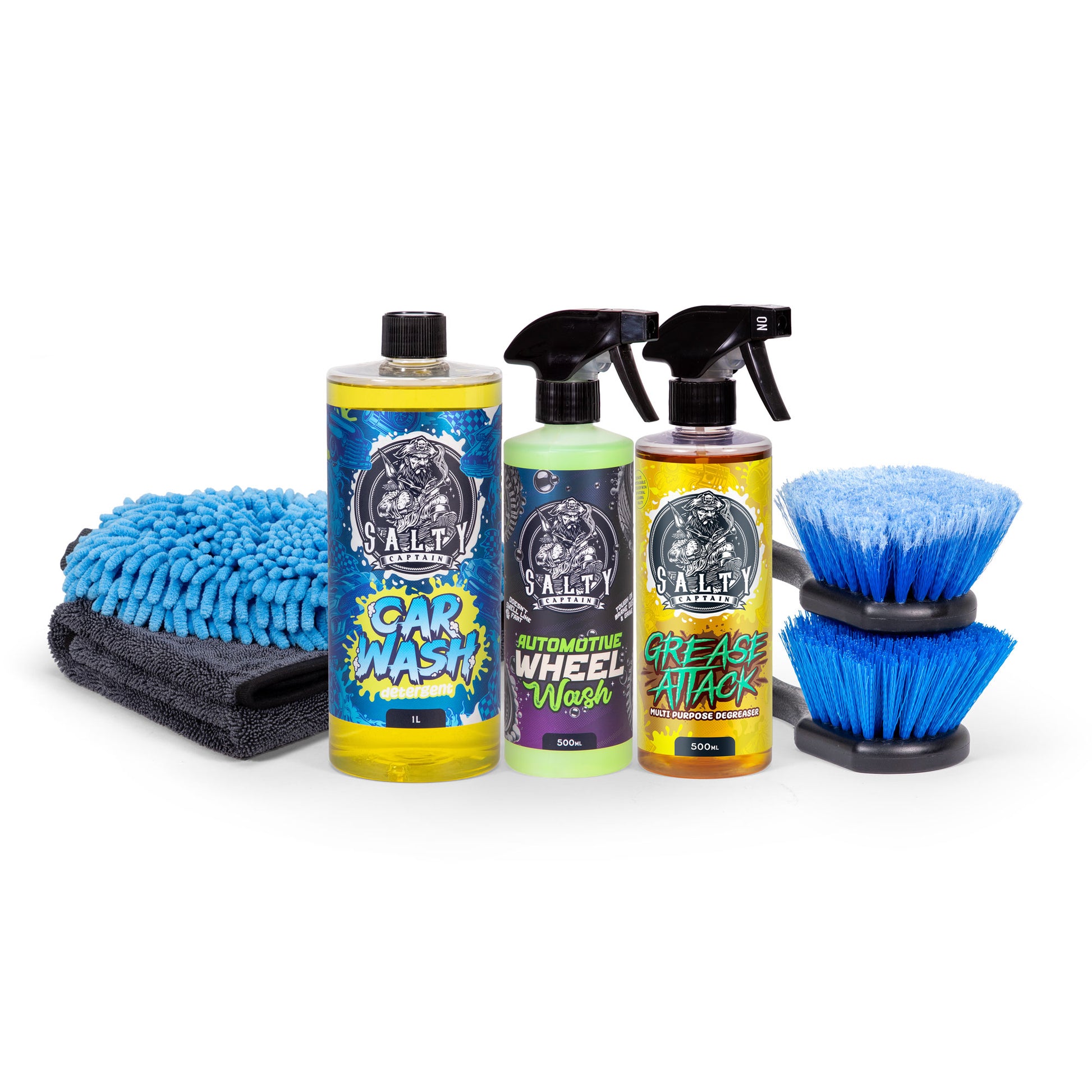 Already got a foam cannon or garden-hose foam gun? Perfect. The Car Exterior Cleaner Kit is designed for returning customers who just want to restock on Salty Captain’s best-in-class cleaners and hardware without repurchasing gear. This kit delivers everything you need to deep-clean paintwork, wheels, and underbody grime using the tools you already have.