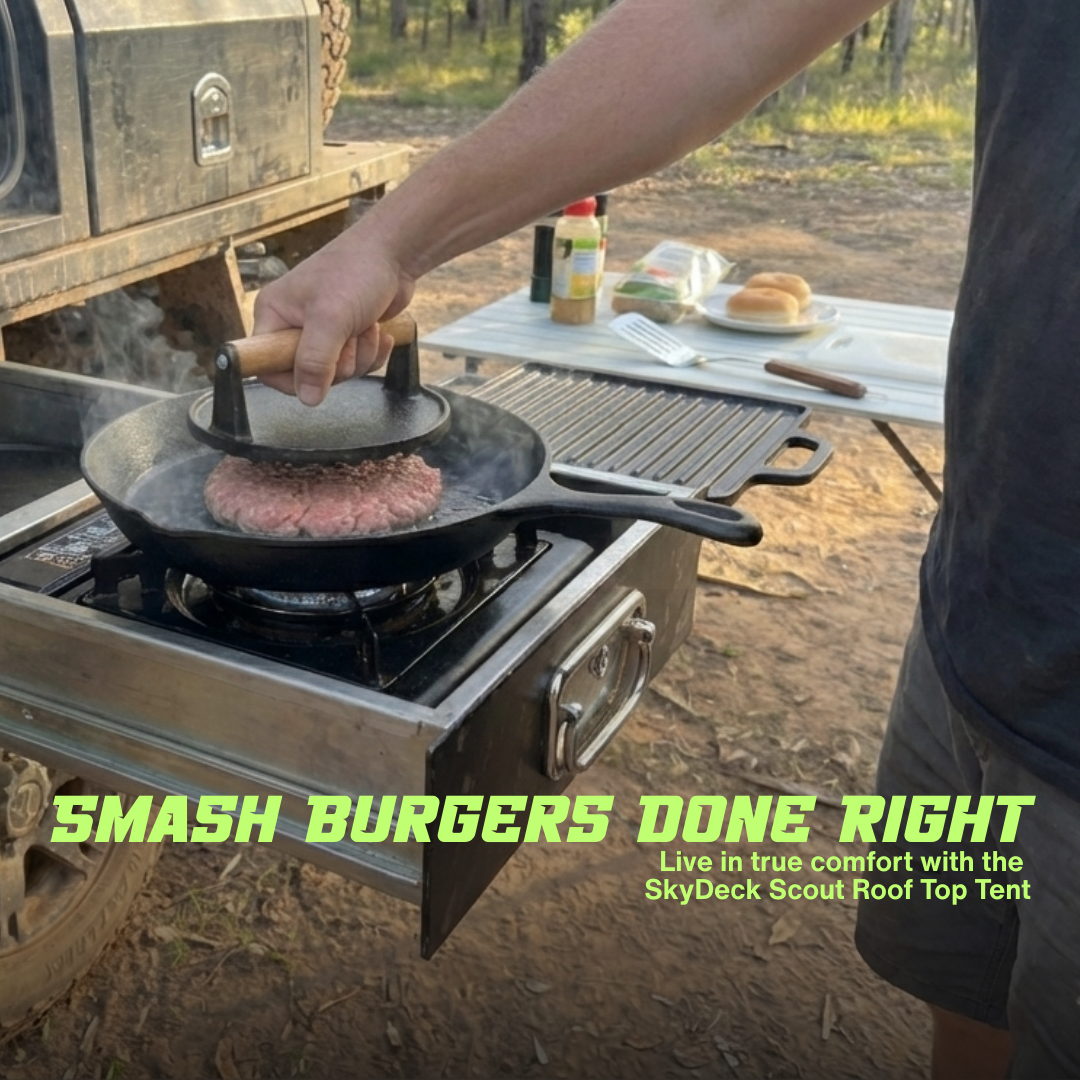 With three pan sizes, a deep Dutch oven for slow cooks, a double-sided grill plate for steaks and smash burgers, plus essential tools like the lid lifter and campfire stand, it’s the most complete cooking setup you’ll ever take outdoors.