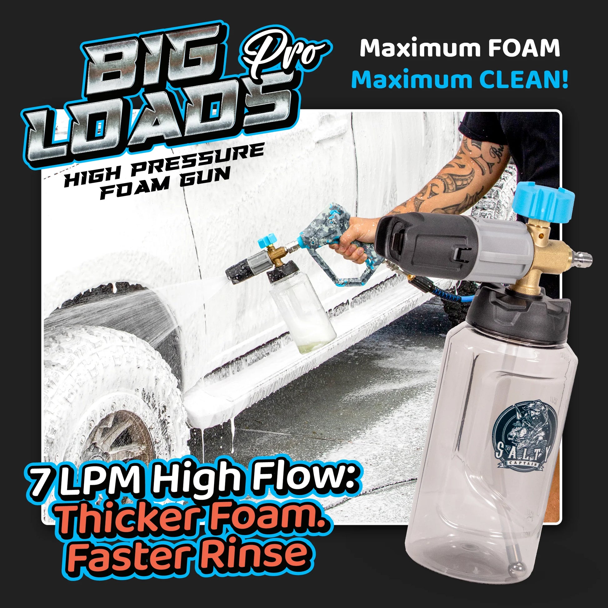 The flow rate (Litres Per Minute) is the real secret to a pressure washer's efficiency. PSI gives you the force to dislodge dirt, but LPM determines how quickly and effectively that water rinses and carries the dirt away. A high-LPM system like ours moves a much larger volume of water, which dramatically speeds up rinsing and does a better job of carrying contaminants away. Plus, it's essential for getting those thick, dense foam cannon results!