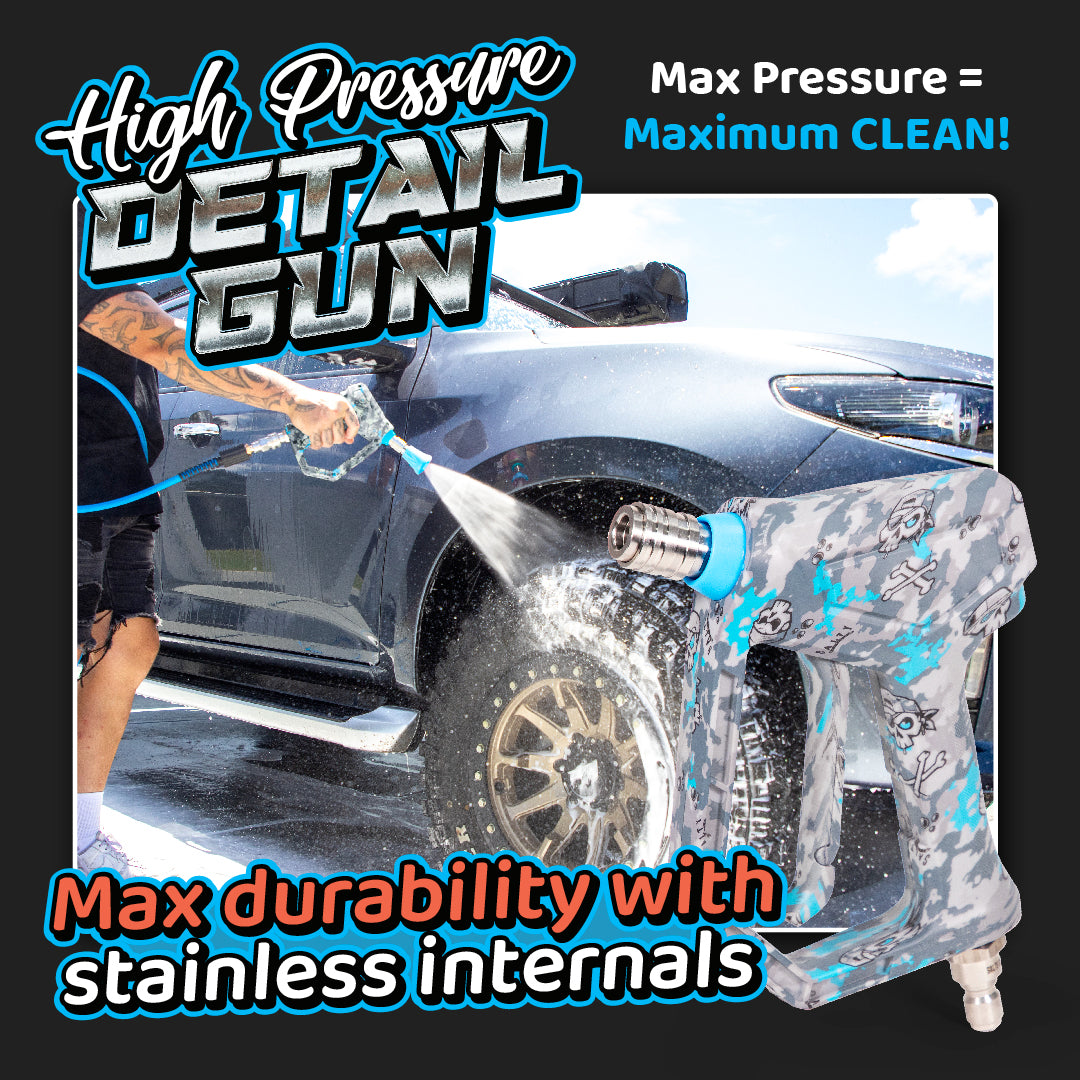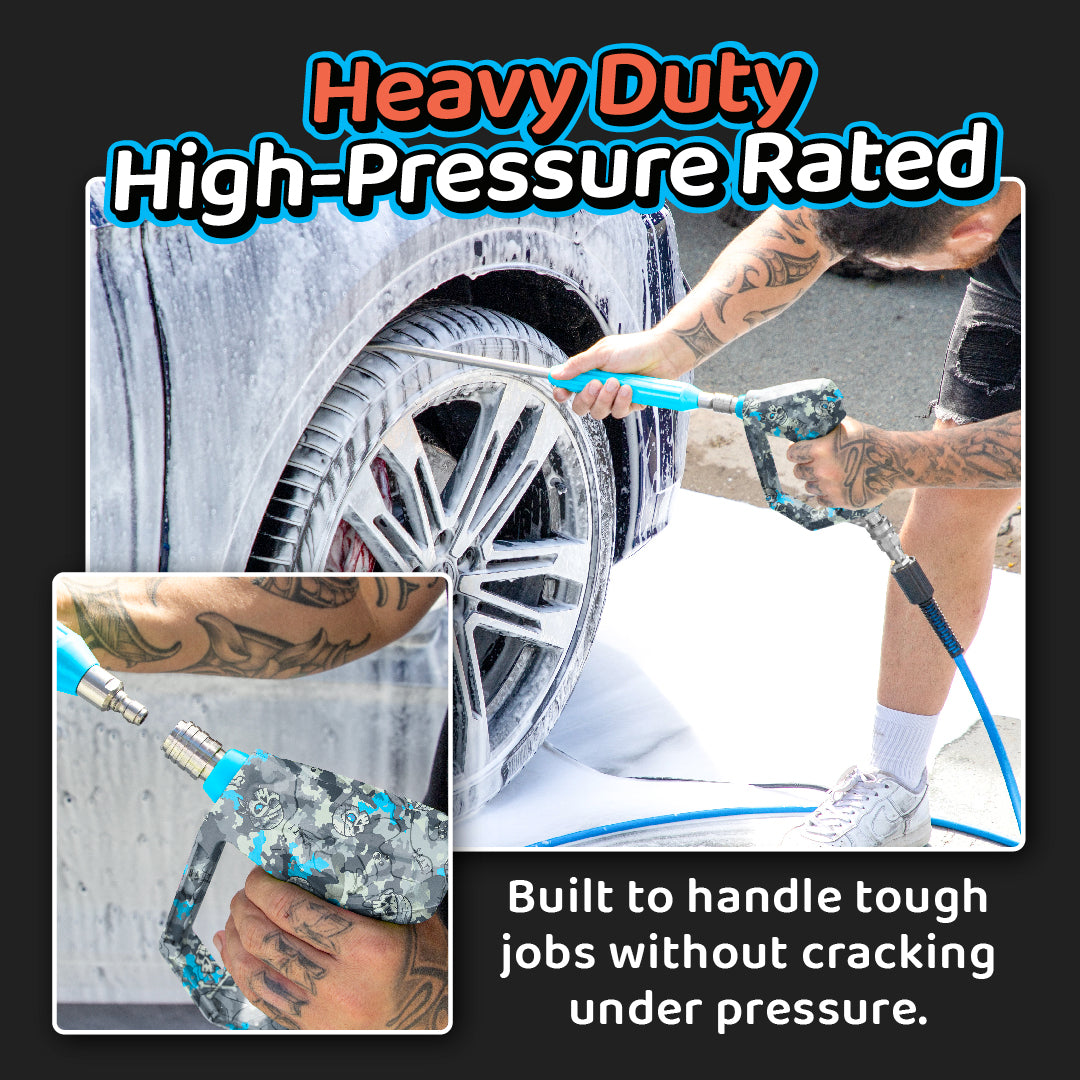 Elevate your car washing to a professional art form with our High Pressure Detail Gun. Designed for unparalleled precision and control in tight spaces, it features premium 316 stainless steel fittings for leak-proof performance and rock-solid durability. The safety trigger lock mechanism provides added security, and its epic blue and grey camo pattern sets it apart. This is the ultimate upgrade for any serious detailer or DIY enthusiast.
