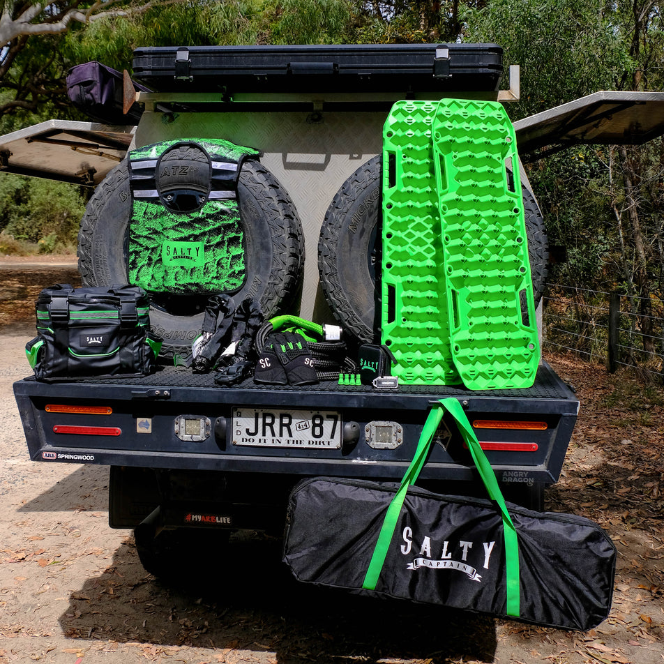 Each component is made from the same high-grade materials trusted across the Salty Captain Raptor Recovery range, from 10-tonne-rated recovery tracks and 13,000kg kinetic rope, to precision brass tyre deflators and UHMWPE soft shackles. Together, they form a complete recovery ecosystem designed for strength, safety, and simplicity.